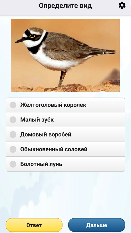Неограниченное число вопросов на узнавание птиц по внешнему виду! Играть можно многократно – вопросы на знание видов чередуются в случайном порядке и ни разу не повторяются! Также можно настраивать сложность Викторины.