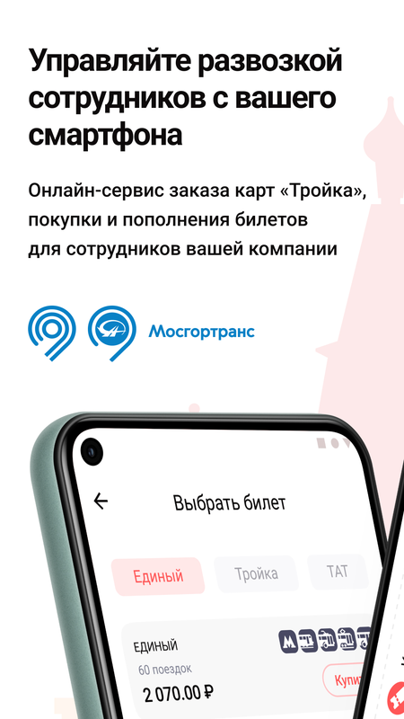 Приложение «Тройка Бизнес» от Мосгортранс позволяет легко покупать карты «Тройка» и проездные билеты на все виды общественного транспорта (Метро, Троллейбус, Автобус, Трамвай, Поезда и др.) по действующим тарифам (Кошелёк, Единый, Единый МЦД, ТАТ, Автобус и т. д.).