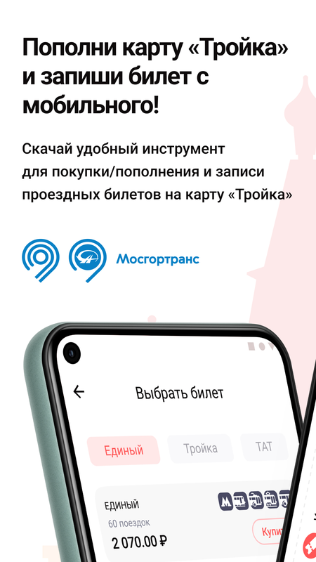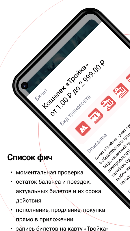С помощью «Супер Тройки» от Мосгортранс вы сможете покупать проездные билеты на все виды общественного транспорта (Метро, Троллейбус, Автобус, Трамвай, Поезда и др.) по действующим тарифам (Кошелёк, Единый, Единый МЦД, ТАТ, Автобус и т. д.).