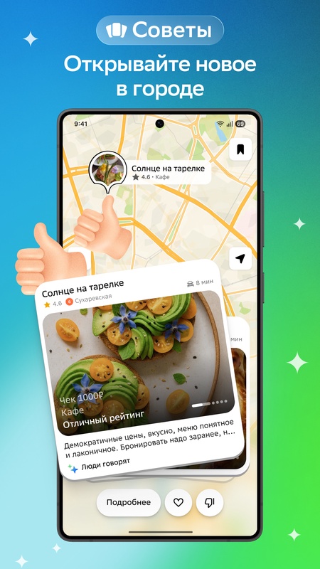 Отзывы. Помогают не только находить компании, товары и услуги, но и выбирать лучшие! В приложении собраны десятки тысяч отзывов, реальные фото от клиентов и показан честный рейтинг места.