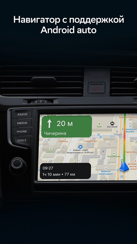Приложение комбинирует gps-навигацию с другими технологиями, чтобы движение по маршруту было точным, даже в центре Москвы и при междугородних поездках. Включите 2ГИС в Android Auto — это бесплатно.