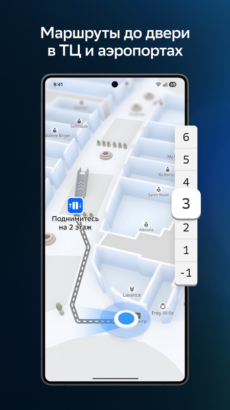 Карты на максималках. C реалистичными моделями зданий, дорогами, остановками — на карте обозначены даже деревья в парке и входы в здания! Для торговых центров, вокзалов, аэропортов и других крупных объектов есть подробные поэтажные планы зданий — вы точно не заблудитесь!