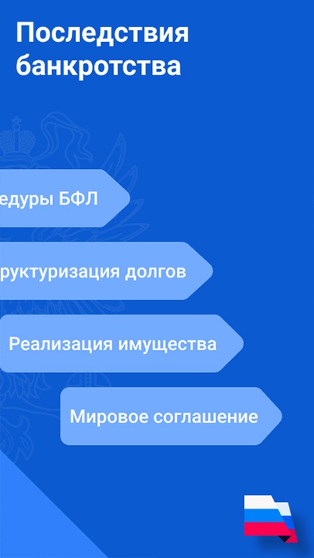 Приложение Банкротство позволяет узнать задолженность и решить, как действовать дальше в непростой жизненной ситуации.