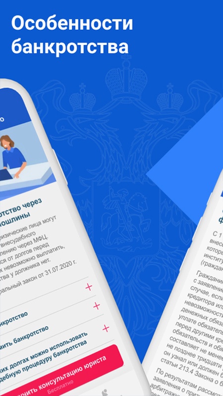 Приложение «Банкротство» содержит актуальную информацию о процедуре банкротства, помогает списать долги и получить бесплатную консультацию юриста онлайн.