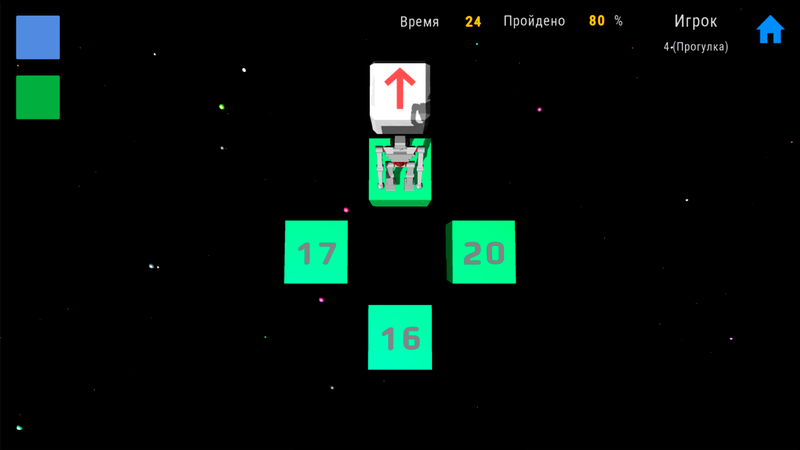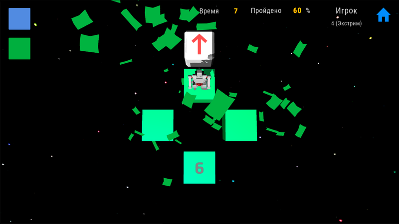 Прыгайте Роботом по блокам, чтобы добраться до выхода на следующий Уровень Игры, который обозначается блоком со стрелкой. Запрыгивайте на блок со стрелкой только тогда, когда стрелка на нём станет зелёного цвета, то есть вы запрыгните на определённое количество блоков. Блоки бывают разных цветов и вы можете видеть одновременно блоки только одного цвета..