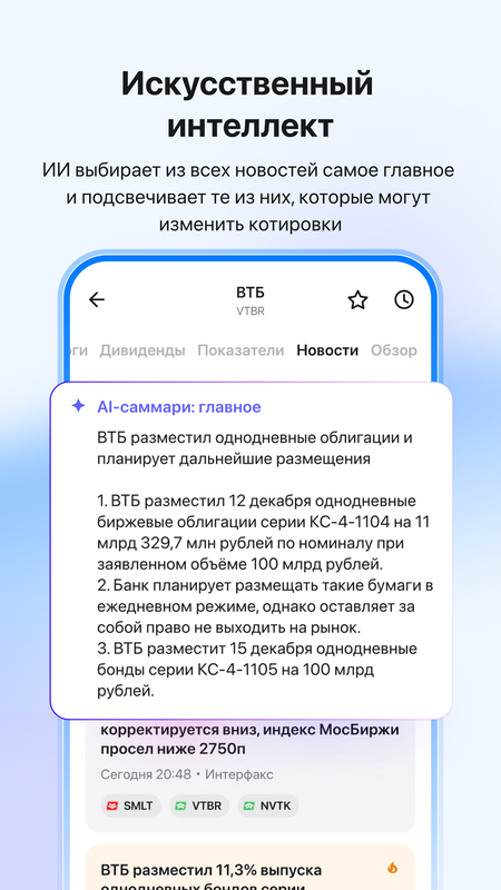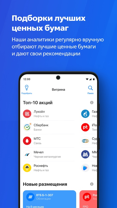 — регулярные подборки лучших ценных бумаг прямо сейчас, которые вручную отбирают наши аналитики. Кроме того, вы можете задать свои параметры и найти акции и облигации, которые подходят для инвестиций именно вам;
