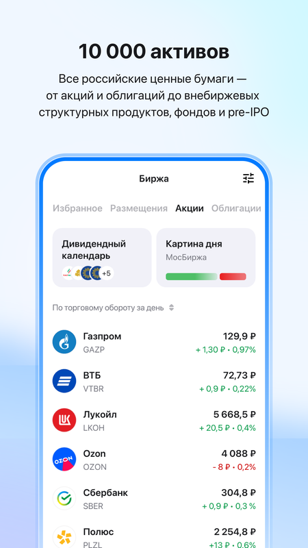 — больше 10 000 активов: акции, облигации, фонды и многое другое;