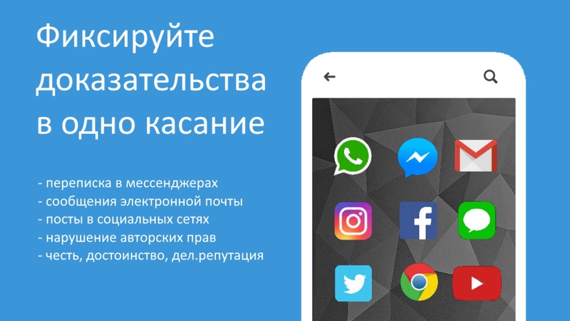 Зафиксировать доказательство на смартфоне с помощью "Шотап" сможет даже ребенок или ваша бабушка. Запротоколировать переписку в мессенджере, посты в инсте, ФБ, ВК и других социальных сетях теперь можно менее чем за 1 минуту. Снять фото для обеспечения доказательства еще проще. Сервис сам определит в каком приложении выполнены скриншоты и укажет об этом в протоколе.