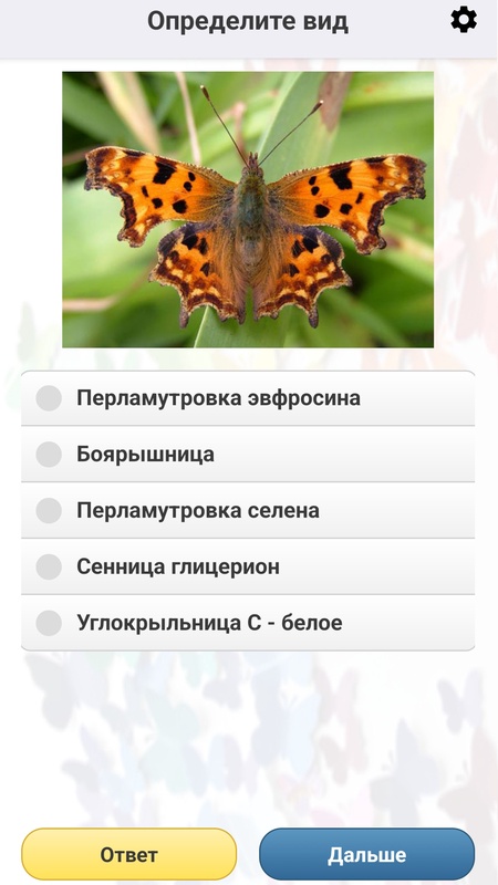 Неограниченное число вопросов на узнавание бабочек по внешнему виду! Играть можно многократно – вопросы на знание видов чередуются в случайном порядке и ни разу не повторяются! Также можно настраивать сложность Викторины и использовать различные типы изображений.