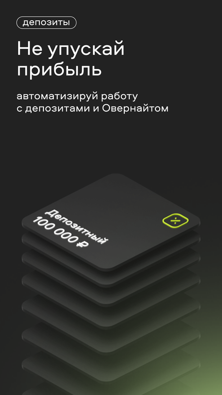 — Витрина со всеми продуктами банка: срочные депозиты до 11% годовых, торговый эквайринг с кешбэком комиссии, бесплатный зарплатный проект, займы до 20 млн ₽ под 1,8% в месяц и много другого полезного.