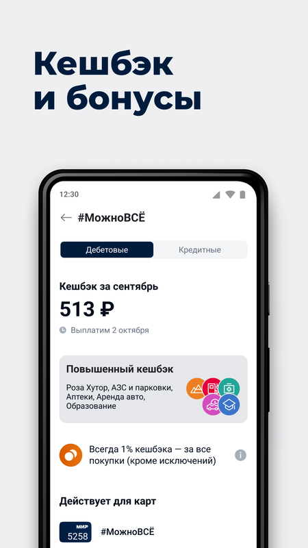 - Активируйте спецпредложения по кешбэку до 30% от партнёров банка