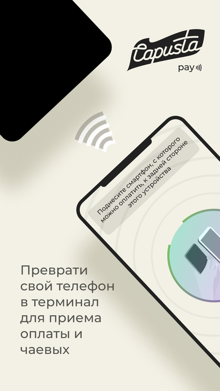 Скачайте и запустите приложение ➡️ зарегистрируйтесь в Capusta.Space и войдите с помощью логина/пароля ➡️ введите сумму оплаты ➡️ клиент сканирует QR-код или прикладывает свой смартфон с NFC к вашему ➡️ получите уведомление об успешной операции.