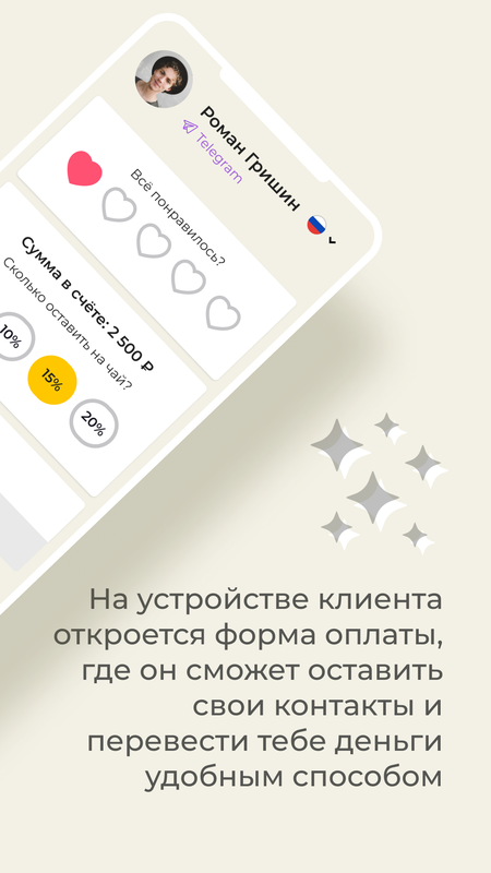 Приложение, которое превращает смартфон в платежный терминал. Можно принимать платежи за товары/услуги, донаты и чаевые и декларировать доход.