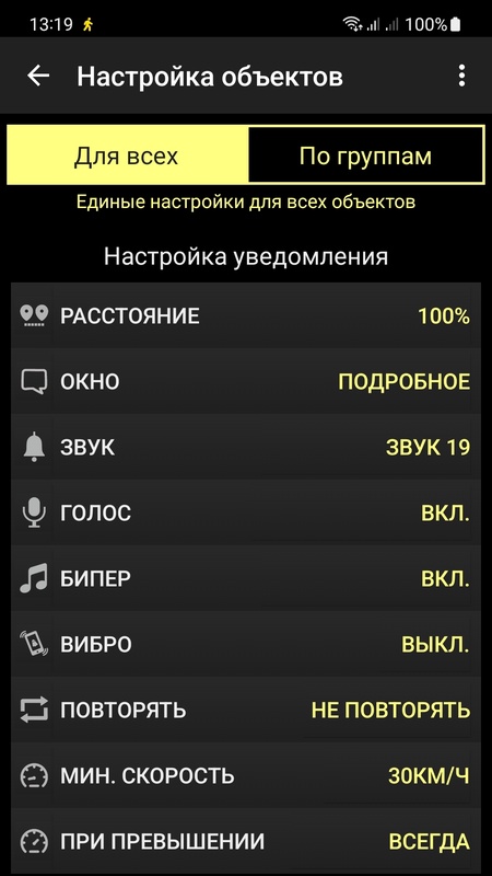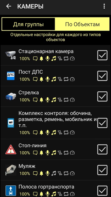 - Для каждой камеры или объекта возможна отдельная настройка звука, голосовой фразы, частоты бипера, превышения скорости и т.п.