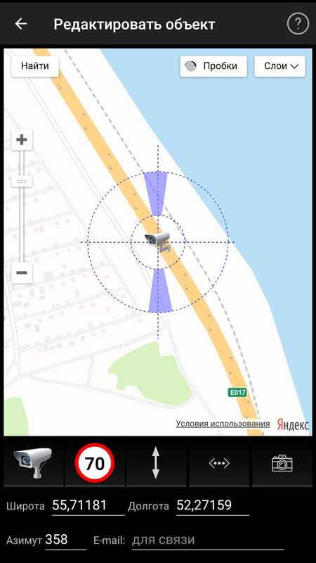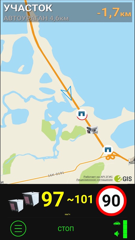 - Есть свои встроенные карты (можно выбирать картоснову Яндекс, 2ГИС, OpenStreetMap) с отображением камер.