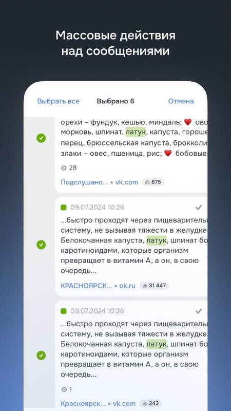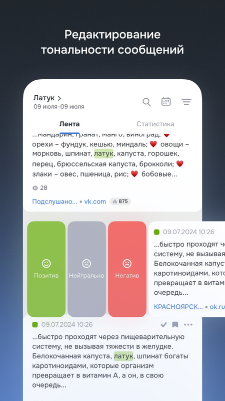 - Производить обработку сообщений: тегировать, редактировать тональность, помещать в избранное, удалять;