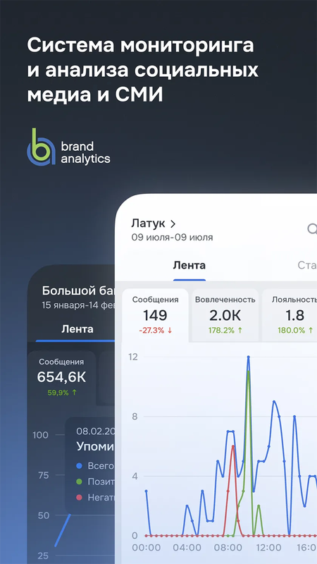 Приложение позволяет получать информацию о состоянии медиаполя бренда в социальных медиа и СМИ, обрабатывать сообщения, а также получать оповещения о важных публикациях.