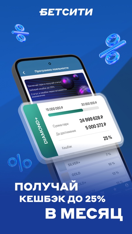 Играй в приложении БЕТСИТИ и получай рекордный кешбэк до 25% ежемесячно!