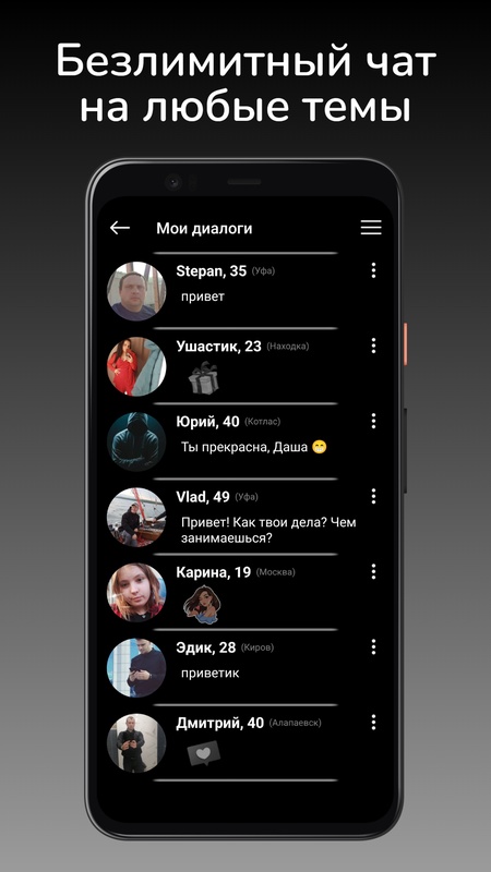 Флиртуй, знакомься, общайся, отправляй смелые фото, проявляй симпатии, знаки внимания и дари подарки.