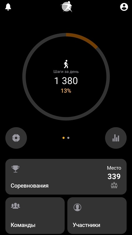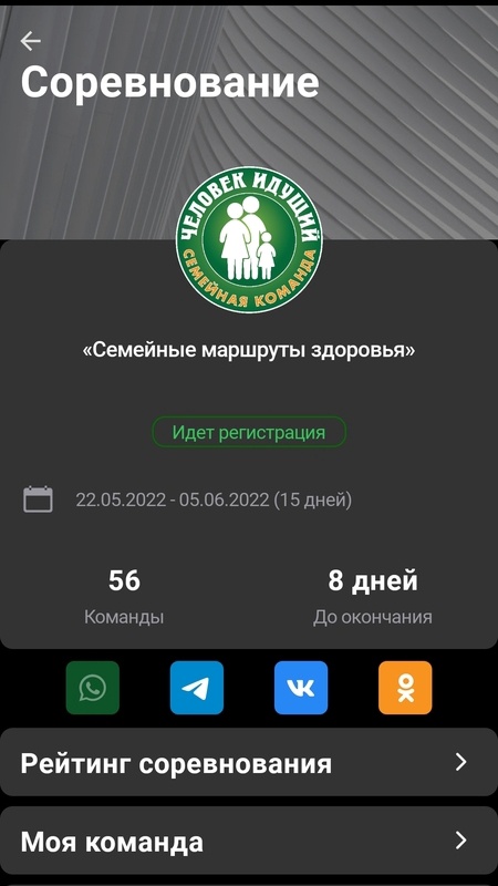 Мобильное приложение "Человек идущий" позволяет принять участие в командных и индивидуальных соревнованиях по фоновой ходьбе (количеству шагов в день).