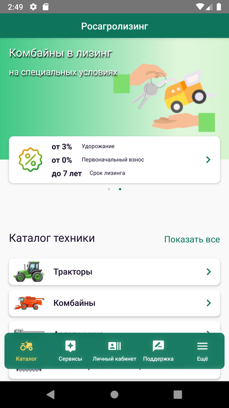 Мобильное приложение АО «Росагролизинг» - онлайн-каталог сельхозтехники и оборудования.