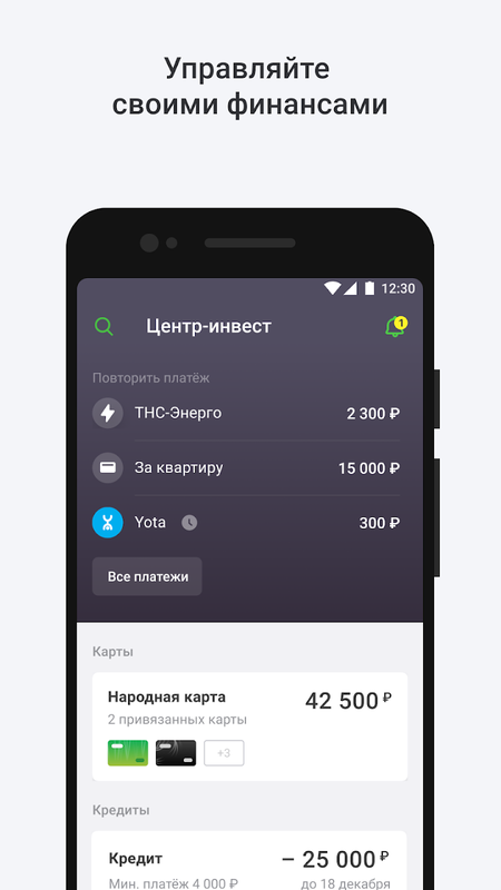 - контроль операций и остатка по своим картам банка «Центр-инвест»;