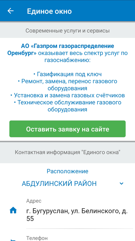 1) Получить информацию по всем услугам предоставляемым АО «Газпром газораспределение Оренбург» и сделать он-лайн заявку на: