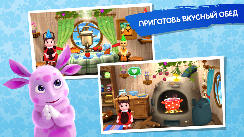 Конечно, было бы не так интересно, если бы с Лунтиком не было его друзей. Здесь и Вупсень, Пупсень, Мила, Пчелёнок и, конечно же, Кузя — куда без него! Они ждут тебя! Покорми их, поиграй с ними в куклы, искупай и уложи спать, почитав книгу перед сном. Игра, где живёт настоящая дружная семья! Мы очень рекомендуем родителям играть вместе с детьми. Эти семейные игры способствуют расширению словарного запаса ребёнка, подталкивают его к экспериментам, а главное, дают возможность детям и родителям провести время в весёлом общении.