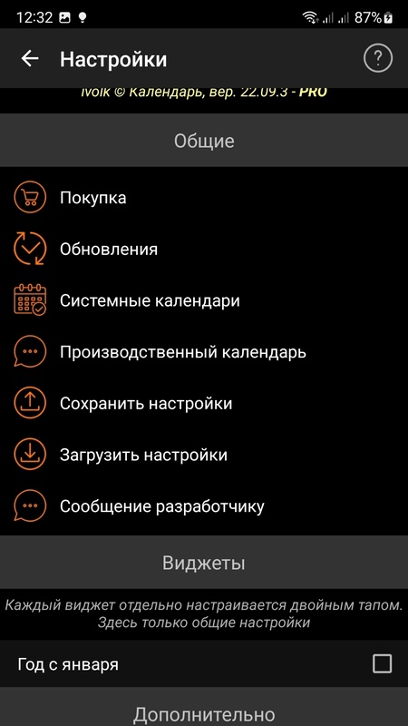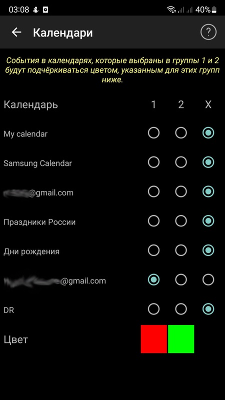 - В меню настроек есть две группы календарей, для которых можно выбрать цвет и подобрать те календари, которые вам необходимо отображать.