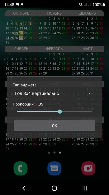 Широкий набор виджетов на год, полгода, 1-2-3-4-6-9-12 месяцев с подсвечиванием дат разными цветами, подчеркиванием, окантовкой и т.п. Растягиваемые виджеты от 1х1 до полного рабочего стола на 1,2,3,6,9,12месяцев. Поддержка системных (google, samsung, huawei) календарей