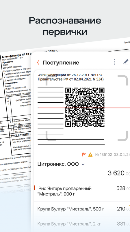 • Распознавайте первичку и чеки
