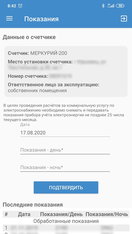 - просматривать историю показаний приборов учета;