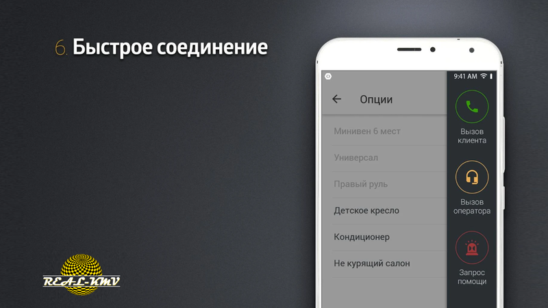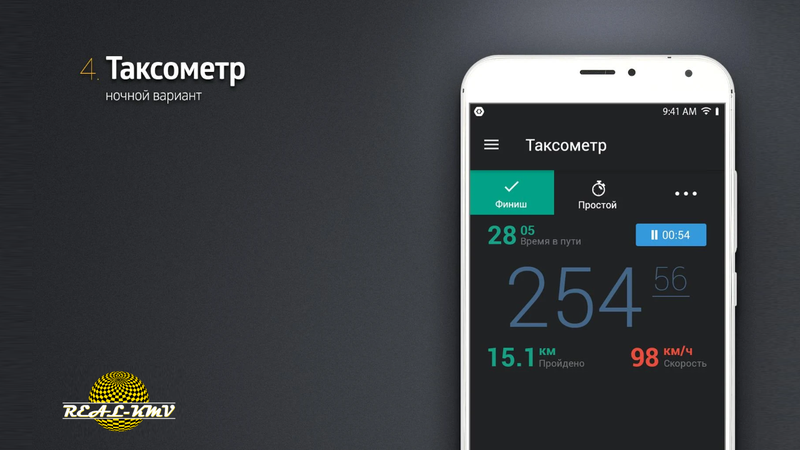 Мобильное приложение «Real-KMV» для водителей такси позволяет ускорить процесс получения заказов и максимально увеличить заработок. Водитель, устанавливающий это приложение, за аналогичное время может получать намного больше заказов.