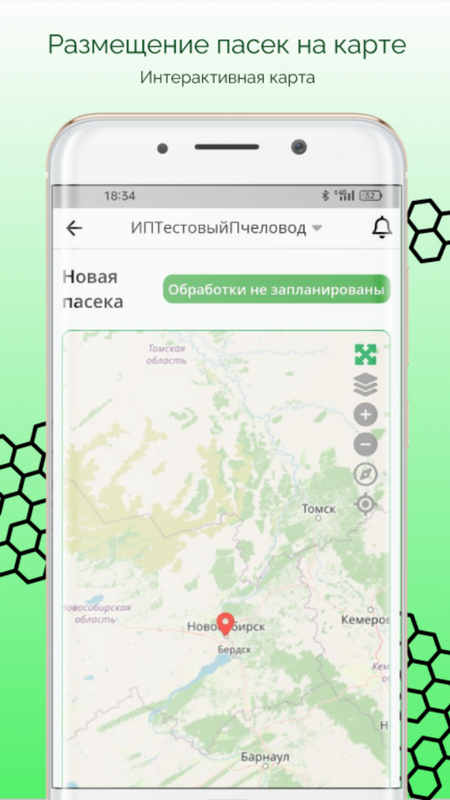 В приложении реализована возможность указания координат пасеки на карте вручную или определения текущего месторасположения по координатам мобильного устройства.