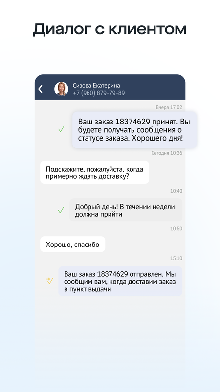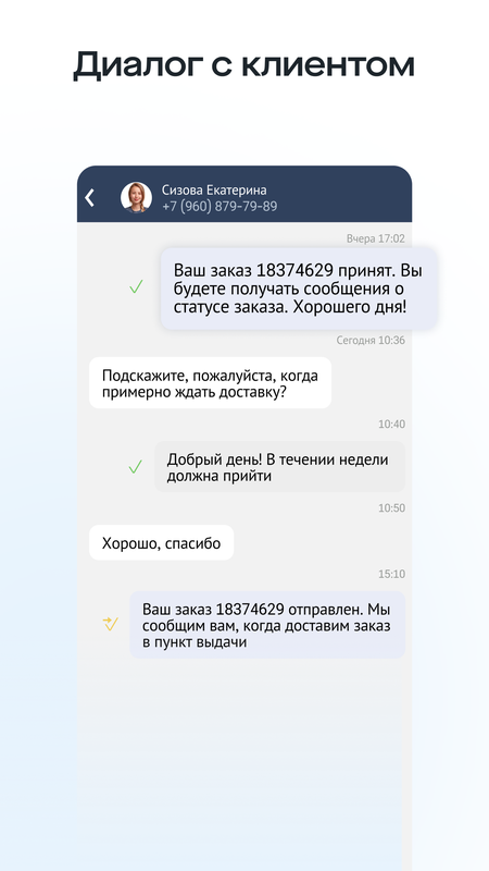 • Получая смс, клиент видит ваш номер телефона и может ответить или перезвонить.