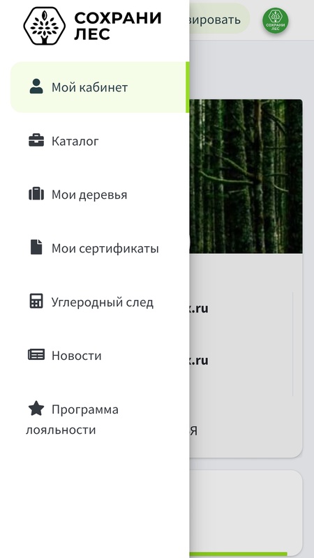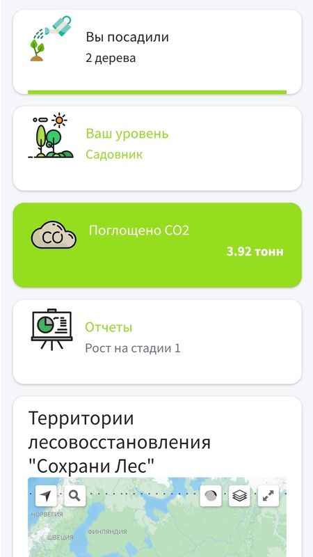 “Сохрани лес” — экологический сервис для посадки лесов и компенсации углеродного следа человека. С помощью нашего приложения вы сможете посадить деревья в любом уголке России, наблюдать за их приживаемостью и ростом, а также увидеть количество CO2 поглощенного Вашим лесом..