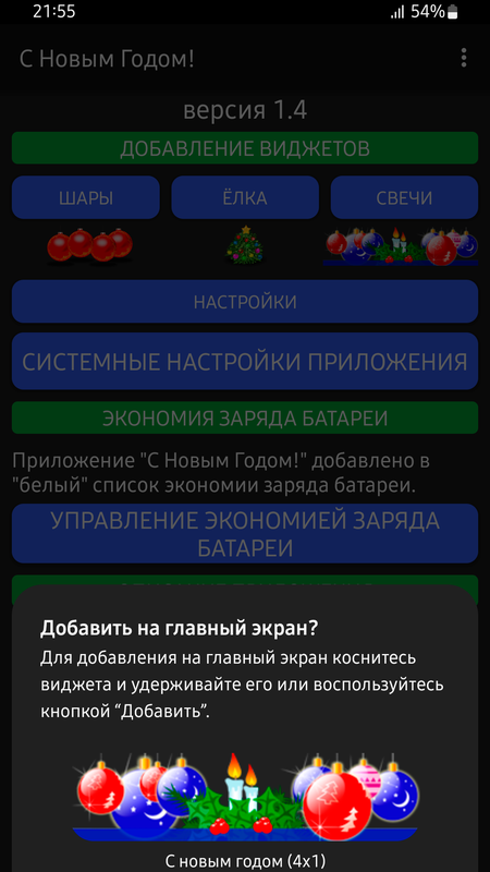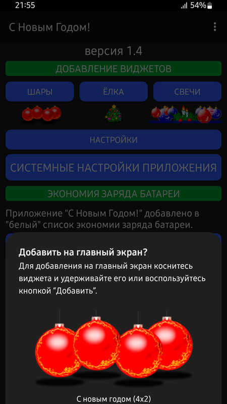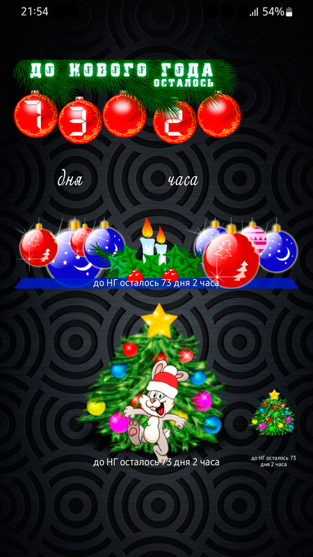 Это простое шуточное приложение как раз и создано для таких целей. Несколько симпатичных виджетов с отсчетом оставшегося времени до нового года будут радовать вас каждый день, в течении всего года. А если нажимать на виджет, то будет проигрываться новогодняя музыка.