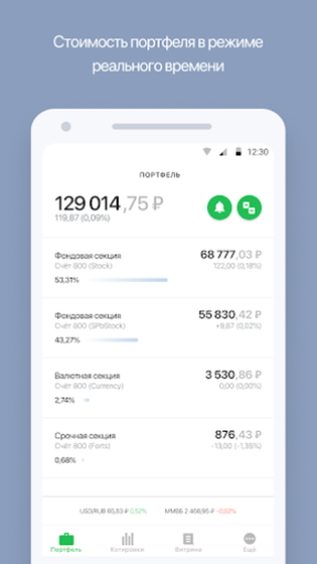 Получайте и анализируйте детальную информацию о состоянии Ваших счетов – наблюдайте за динамикой изменения стоимости Вашего портфеля в режиме реального времени из любой точки мира.