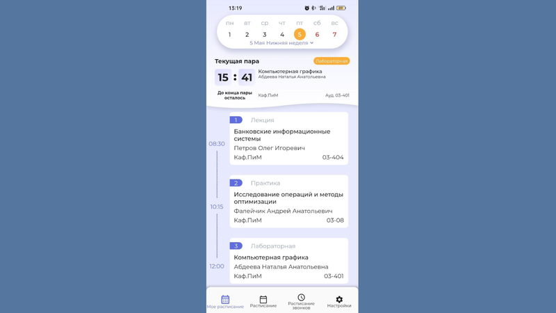 Мобильное приложение "Расписание ЗабГУ" предоставляет полную и актуальную информацию о расписании всех занятий - лекций, семинаров, практических занятий для всех факультетов и специальностей.