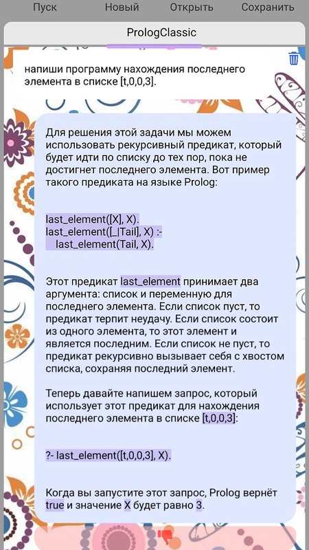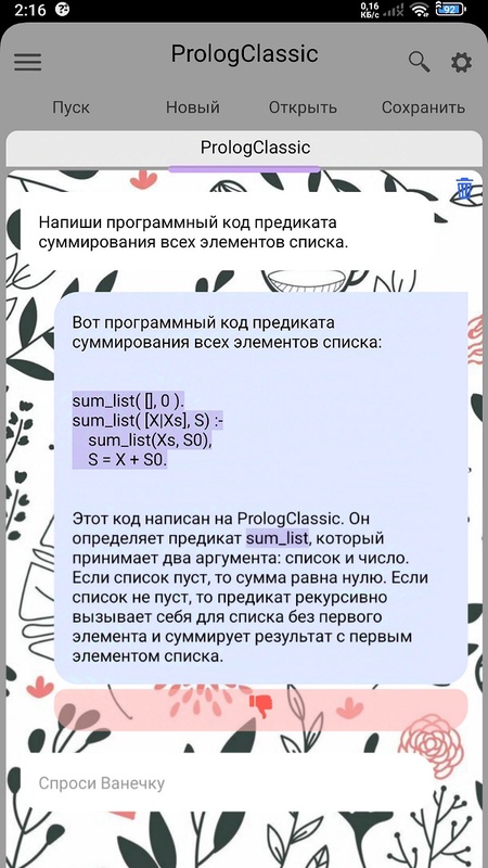 Имеется умный помощник Ванечка. Который может как предоставить всю справочную информацию по PrologClassic, так и написать программный код на прологе по заданному запросу. Умный помощник работает на основе языковых моделей GigaChat и YandexGPT.