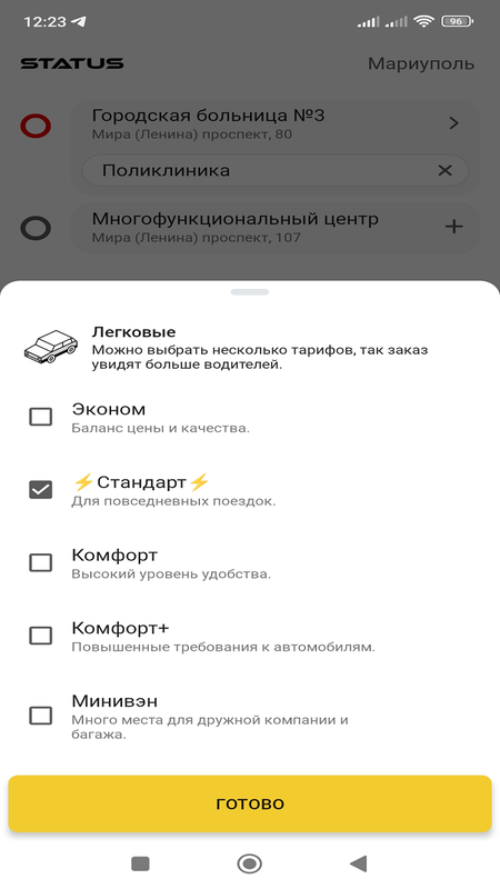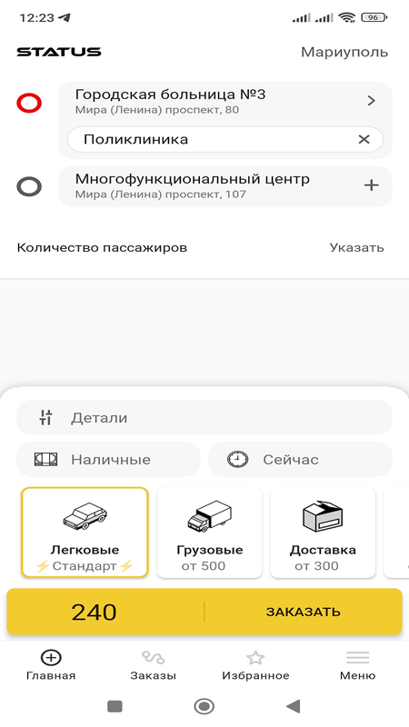 Заказ такси, через приложение "Статус такси" в городе Мариуполь!