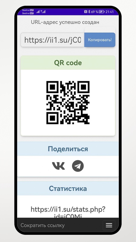 Бесплатный сервис по сокращению длинных ссылок, после сокращения вы получите короткую ссылку которой можно поделиться в соц. сетях, а так же qr код + статистика