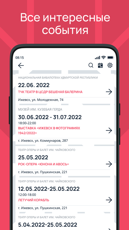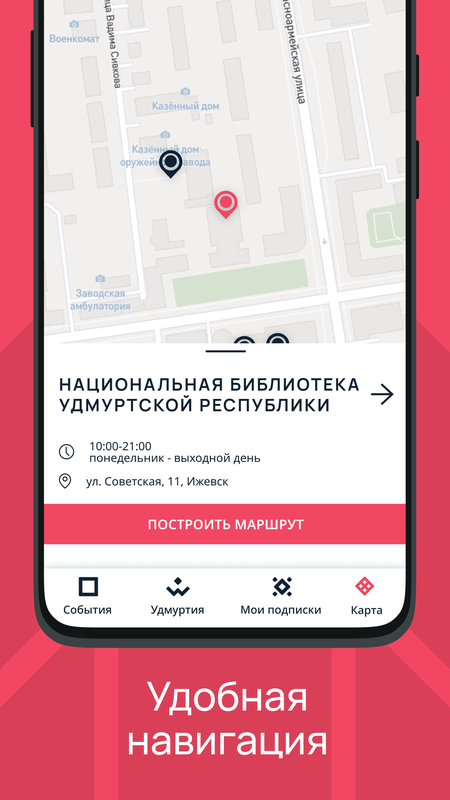 Удобный навигатор по достопримечательностям республики. Мобильное приложение «Удмуртия приглашает» помогает планировать ваш досуг, служит незаменимым помощником туристам и местным жителям Удмуртии. Содержит полезную информация о курортах, магазинах и ресторанах, сервис покупки билетов и бронирования гостиниц на единой информационной платформе. Подписки на новости культуры, спорта. Анонсы концертов, спектаклей, фестивалей.