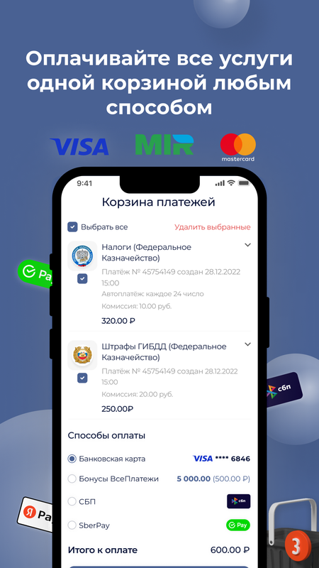 Сервис ВсеПлатежи уже много лет помогает сотням тысяч пользователей из многих городов России быстро и удобно оплачивать разнообразные услуги онлайн. Создавайте шаблоны и подписки, подключайте уведомления и автоплатежи, воспользуйтесь всеми современными способами оплаты и не переживайте за то, что ваша оплата потеряется! Мы гарантируем безопасность при совершении оплаты и своевременное перечисление денежных средств.