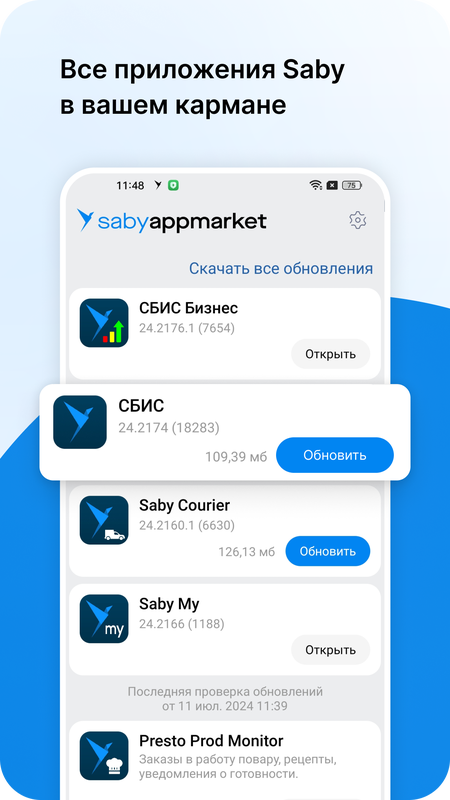 Магазин приложений СБИС (Saby) для мобильных устройств на Android. Получайте push-уведомления о новых версиях и скачивайте обновления еще до того, как они появятся в Google Play