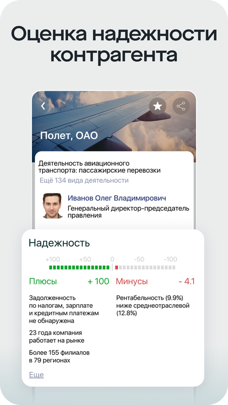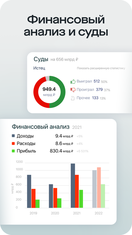 Saby поможет избежать сотрудничества с организациями, которые не выполняют обязательства, которым грозит банкротство или проблемы с налоговой. Вычислит компании-однодневки. Покажет, как часто компания выступает истцом или ответчиком в суде.