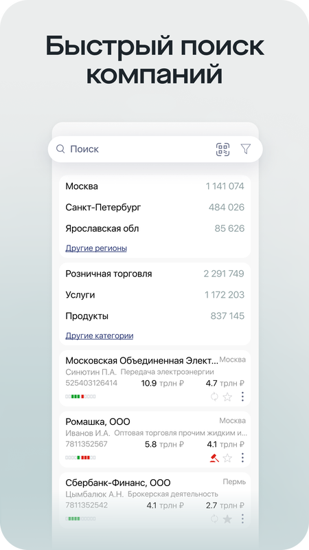 В Saby собрана самая полная и актуальная информация: реквизиты, владельцы, финансовое состояние, стоимость бизнеса, кредитоспособность, участие в арбитражных делах, надёжность. Данные ежедневно обновляются более чем с 200 источников, таких как ФНС, Центробанк, Верховный суд, Роскомнадзор, Казначейство, торговые площадки и другие.