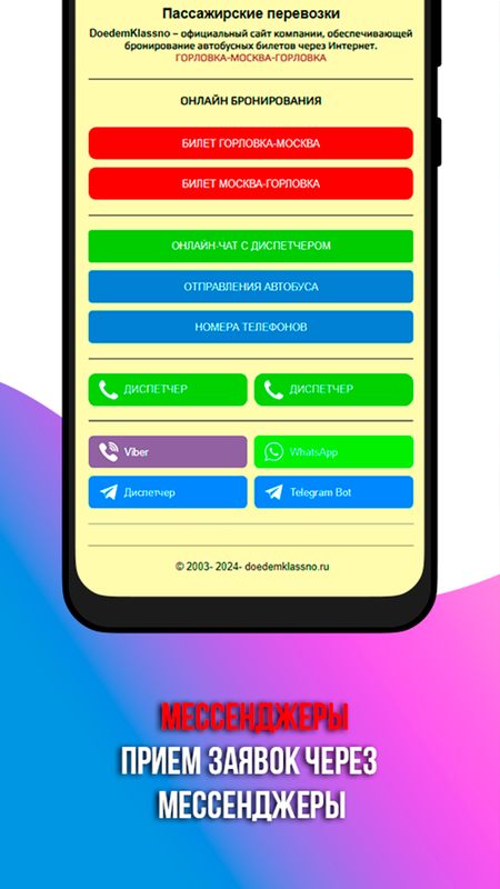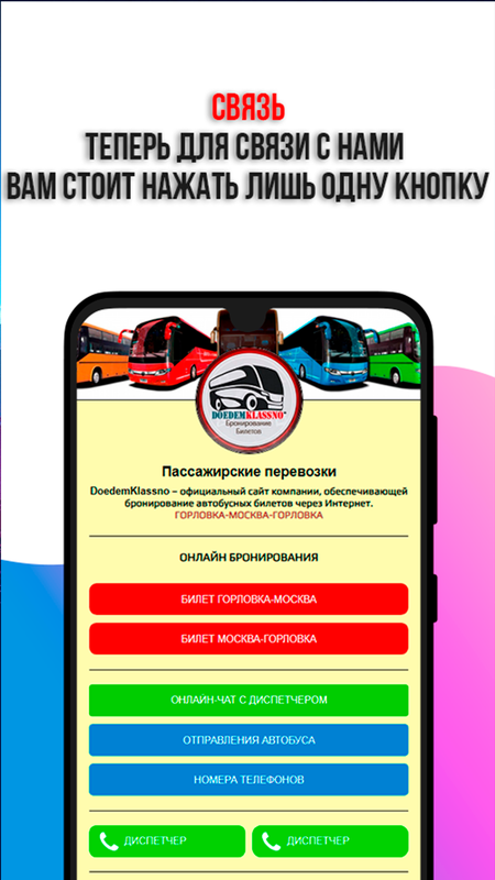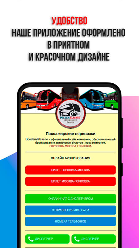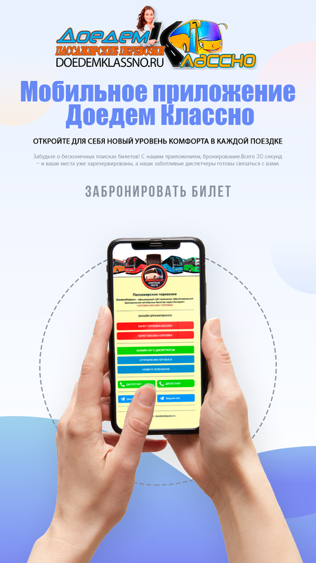 Также вы можете скачать мобильное приложение DoedemKlassno для удобного бронирования билетов на маршрут Горловка - Москва. Мы предлагаем быстрый и легкий способ получения билетов как через интернет, так и по телефону.
