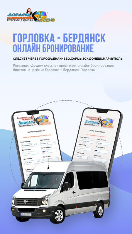 Компания «Доедем классно» предоставляет услуги по пассажирским перевозкам из Горловки в Москву с высоким уровнем комфорта и безопасности.