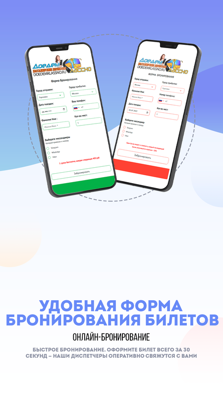 Заполнение формы для получения билета занимает всего несколько минут, а наши современные автобусы гарантируют уютное путешествие. Мы стремимся сделать вашу поездку максимально приятной и спокойной.